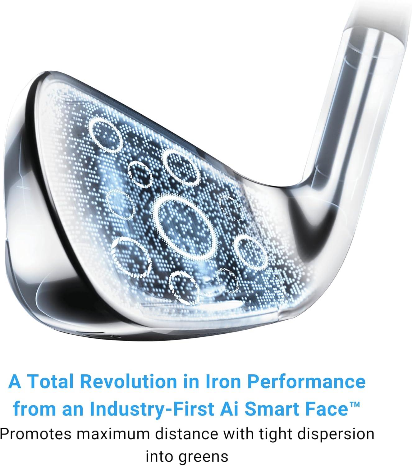 The all-new Ai Smart Face optimizes iron performance using swing data from thousands of real golfers. This set of swing dynamics, or Swing Code, consists of swing speed, club delivery, and face orientation just prior to impact. The result is a face that promotes maximum distance with tight dispersion into the green